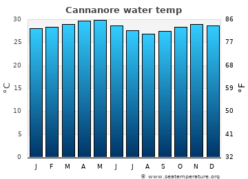 The measurements for the water temperature in Cannanore, Kerala are provided by the daily satellite readings provided by the NOAA. The temperatures given are the sea surface temperature (SST) which is most relevant to recreational users.