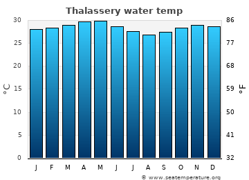 The measurements for the water temperature in Thalassery, Kerala are provided by the daily satellite readings provided by the NOAA. The temperatures given are the sea surface temperature (SST) which is most relevant to recreational users.