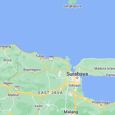 The measurements for the water temperature in Paciran, East Java are provided by the daily satellite readings provided by the NOAA. The temperatures given are the sea surface temperature (SST) which is most relevant to recreational users.