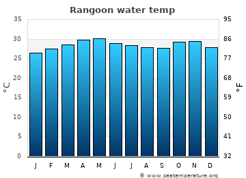 The measurements for the water temperature in Rangoon, Yangon are provided by the daily satellite readings provided by the NOAA. The temperatures given are the sea surface temperature (SST) which is most relevant to recreational users.