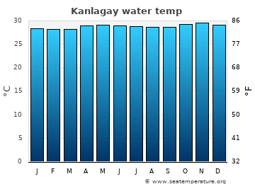 The measurements for the water temperature in Kanlagay, Autonomous Region in Muslim Mindanao are provided by the daily satellite readings provided by the NOAA. The temperatures given are the sea surface temperature (SST) which is most relevant to recreational users.