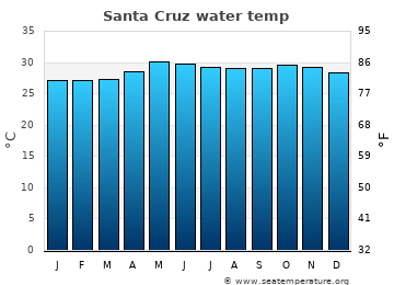 The measurements for the water temperature in Santa Cruz, Central Luzon are provided by the daily satellite readings provided by the NOAA. The temperatures given are the sea surface temperature (SST) which is most relevant to recreational users.