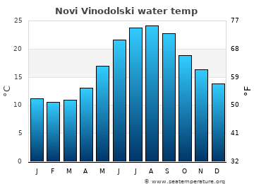The measurements for the water temperature in Novi Vinodolski, Primorsko-Goranska are provided by the daily satellite readings provided by the NOAA. The temperatures given are the sea surface temperature (SST) which is most relevant to recreational users.