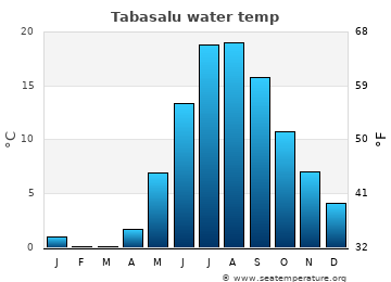The measurements for the water temperature in Tabasalu, Harju County are provided by the daily satellite readings provided by the NOAA. The temperatures given are the sea surface temperature (SST) which is most relevant to recreational users.