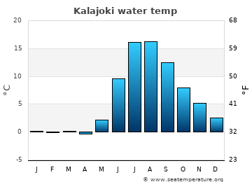The measurements for the water temperature in Kalajoki, Oulu are provided by the daily satellite readings provided by the NOAA. The temperatures given are the sea surface temperature (SST) which is most relevant to recreational users.