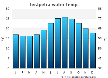 The measurements for the water temperature in Ierápetra, Crete are provided by the daily satellite readings provided by the NOAA. The temperatures given are the sea surface temperature (SST) which is most relevant to recreational users.