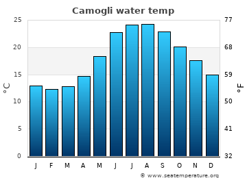 The measurements for the water temperature in Camogli, Liguria are provided by the daily satellite readings provided by the NOAA. The temperatures given are the sea surface temperature (SST) which is most relevant to recreational users.