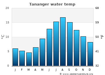 The measurements for the water temperature in Tananger, Rogaland are provided by the daily satellite readings provided by the NOAA. The temperatures given are the sea surface temperature (SST) which is most relevant to recreational users.