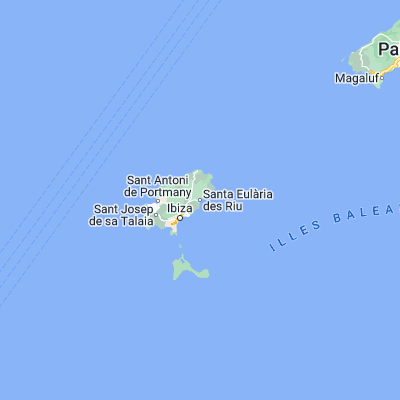 The measurements for the water temperature in Santa Eulària des Riu, Balearic Islands are provided by the daily satellite readings provided by the NOAA. The temperatures given are the sea surface temperature (SST) which is most relevant to recreational users.