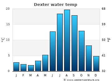 The measurements for the water temperature in Dexter, New York are provided by the daily satellite readings provided by the NOAA. The temperatures given are the sea surface temperature (SST) which is most relevant to recreational users.