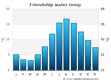 The measurements for the water temperature in Friendship, Maine are provided by the daily satellite readings provided by the NOAA. The temperatures given are the sea surface temperature (SST) which is most relevant to recreational users.
