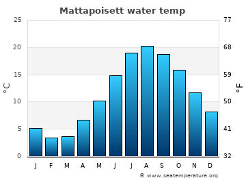 The measurements for the water temperature in Mattapoisett, Massachusetts are provided by the daily satellite readings provided by the NOAA. The temperatures given are the sea surface temperature (SST) which is most relevant to recreational users.
