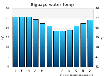 The measurements for the water temperature in Biguaçu, Santa Catarina are provided by the daily satellite readings provided by the NOAA. The temperatures given are the sea surface temperature (SST) which is most relevant to recreational users.